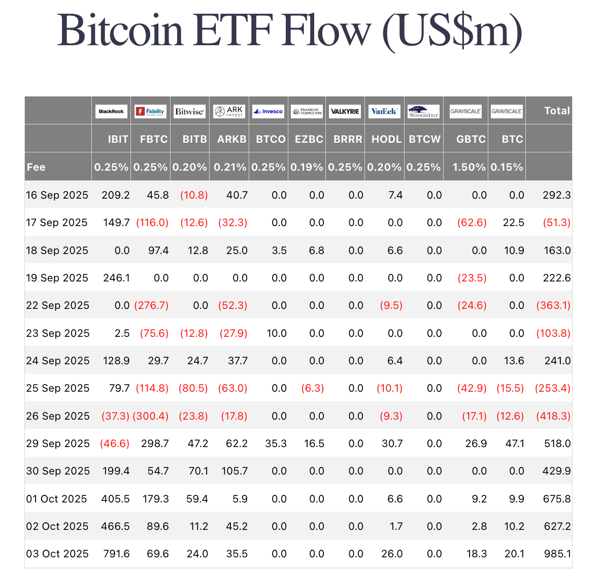 Uncertainty: the U.S. federal shutdown (since Oct 1) may delay official data, but risk appetite remains firm on easing expectations and ETF inflows.